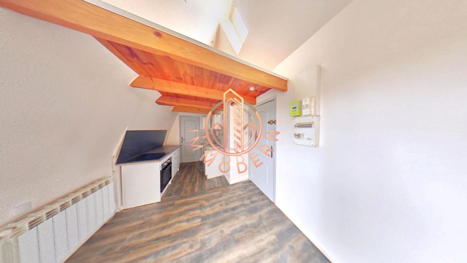 L'appartement se compose comme suit :- Un séjour ouvert sur la cuisine équipée avec four, réfrigérateur, plaques de cuisson, hotte et rangements.- Une salle d'eau avec lavabo et WC.- Un espace de rangement et/ou de nuit à l'étage mansardée.